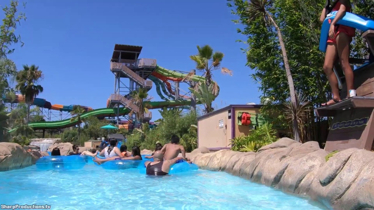Relax and take in the scenery as you lie on a tube and float along a 1,250-foot long lazy river. Loggerhead Lane Lazy River at Aquatica San Diego in Chula Vista, California, USA.